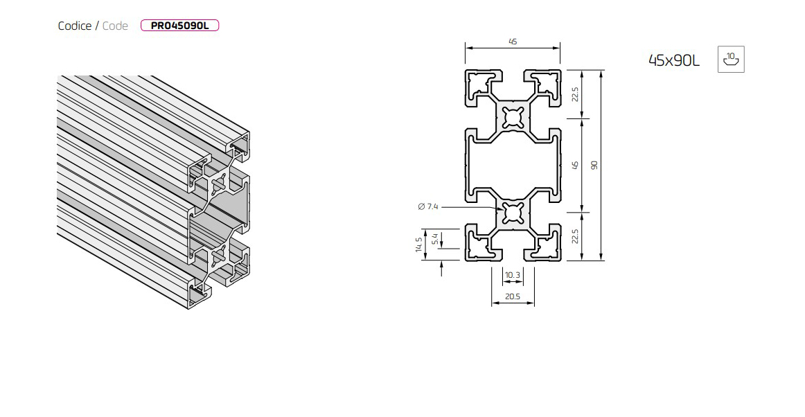 Aluminum Profile 45x90 C.10 Light PR045090L
